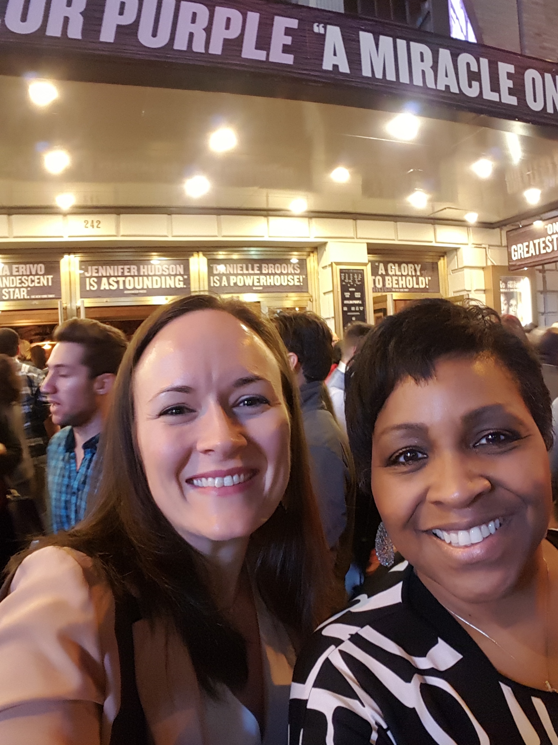 Me and Alison after seeing The Color Purple on Broadway! It was a fabulous night! If you don’t know who Cynthia Erivo is, google this beautiful, powerful sister with a voice. She was AMAZING in the lead role as Celie. Jennifer Hudson was wonderful as Shug. Peep this you-tube: